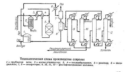 Различные способы получения стирола. Для выбранного способа привести принципиальную технологическую схему. Обосновать выбор типа и конструкции реактора. Способы управления селективностью.