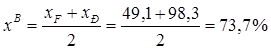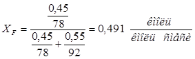 – концентрация легколетучего компонента в паре, находящегося в равновесии с исходной смесью XF