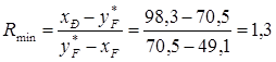 и из точки минимума на кривой определяется оптимальное рабочее флегмового число R
