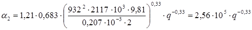 где ρ2 = 932 кг/м2 ; λ2 =0,683 Вт/(м ·К); μ2 =0,207 ·10-3 Па·с – физико-химические характеристики конденсата воды при tконд =132,9ºС
