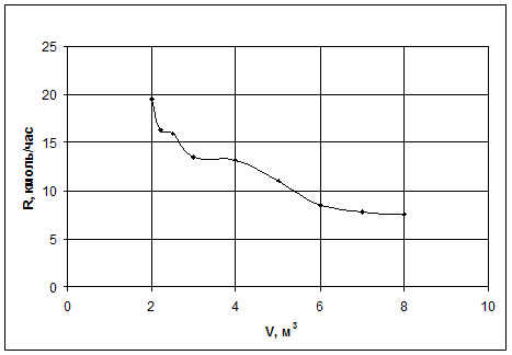 Однако в любом случае, питание реактора складывается из свежего сырья и рециркулята, и должно иметь тогда большее количество, по крайней мере, одного из реагентов, чем при загрузке реактора лишь свежим сырьем. Вследствие этого, степень превращения за один проход через реакционный объем будет ниже степени превращения, рассчитанной для случая отсутствия рецикла.