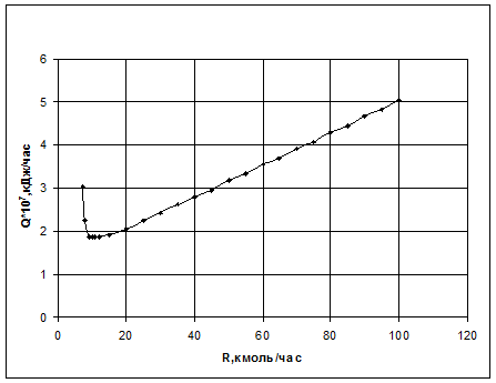 Ранее в работах [1.2] было показано, что в технологических схемах содержащих ректификацию около 80% всех энергетических затрат приходится именно на этот процесс. Поэтому затраты энергии в реакционно-ректификационных процессах можно оценивать по энергозатратам на ректификацию. Эти затраты в основном связаны с формированием потока пара и для их оценки используют значение минимального флегмового числа, необходимого для получения продуктов заданного качества. Режим минимального орошения реализуется в колонне бесконечной высоты, и при этом в колонне имеются зоны постоянных концентраций [2, 3]. Существуют различные методы оценки минимального флегмового числа как численные, так и аналитические. Численные методы [24.97-104] позволяют определять минимальное флегмовое число для смесей с любым фазовым равновесием и не требуют допущения о постоянстве потоков жидкости и пара по высоте колонны. В их основе лежат уравнения материальных и тепловых балансов для зон постоянных концентраций укрепляющей и исчерпывающей секций ректификационной колонны и различные методики сходимости [25-27.99]. Поскольку численные методы являются итерационными, бывают случаи, когда расчет не сходится. Аналитические же методы позволяют оценить значение минимального флегмового числа непосредственно, однако требуют принятия различных допущений. Наиболее распространенным из таких является метод Андервуда [105-107], в основе которого лежит уравнение, связывающее составы продуктовых потоков со значением минимального флегмового числа при допущениях о постоянных относительных летучестях компонентов разделяемой смеси и постоянстве мольных потоков жидкости и пара по высоте колонны.