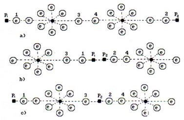 Связи между атомами в молекуле формируют поверхностные электроны, которые мы называем еще и валентными. Валентные электроны атомов, образующих молекулу, могут вступать в связь друг с другом или с протонами ядер, если ячейка ядра, где расположен протон, оказывается свободной. Это свойственно атому водорода.