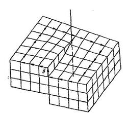 всунутуатомну площина (з однієї сторони площини дислокації ґрати складаються з n+1 атомних зарядів, яким протистоять й атомних рядів). Горизонтальна риса умовно показує площину зрушення. У випадку крайової дислокації обхід по контурі Бюргерса приводить до повернення у вихідну точку, що лежить у тій же площині. Вектор Бюргерса проходить у цьому випадку перпендикулярно до напрямку дислокації (визначення крайової дислокації).
