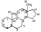 Как видно из рисунка, кольца А и D способны к видоизменениям, благодаря их краевому расположению. На следующем рисунке показана расстановка углерода в стероидах, позиции 10 и 13 наиболее подвержены различным изменениям.