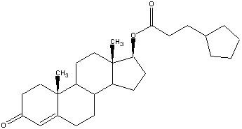 В молекуле тестостерона ципионата, вместо водорода в гидроксильной группе С17, к молекуле тестостерона присоеденена боковая цепь, состоящая из 8 атомов углерода, кольца циклопентана и одной карбоновой группы (=О). Тестостерон ципионат входит в группу наиболее сложных эфиров. Если сравнивать сложные эфиры по их молекулярной массе, то можно поставить их в таком порядке, начиная с наименьшей: ацетат, пропионат, фенилпропионат, изокапроат, капроат, энантат, ципионат, деканоат, ундесиленат, ундеканоат, лаурат. Наибольшей молекулярной массой обладает лаурат, который состоит из 12 атомов углерода, 24 атомов водорода и 2 атомов кислорода. Сложные эфиры могут присоединяться и к другим стероидам, не ограничиваясь только тестостероном.