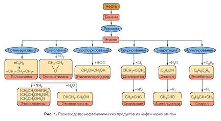 Современные достижения в области металлокомплексного катализа позволяют в относительно мягких условиях получать из метанола и синтез-газа такие продукты нефтехимии, как: