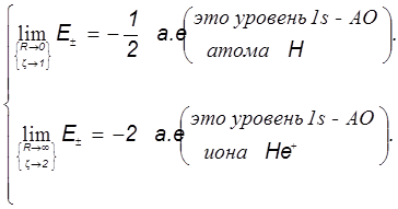 Наконец, для проверки физической корректности расчётов и положенных в их основу схем проанализируем предельные значения интегралов и уровней энергии МО:
