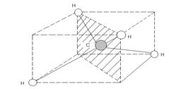 3. Плоскость симметрии. Плоскостью симметрии молекулы называется плоскость, при отражении в которой молекула совмещается сама с собой. Пример молекулы с вертикальной плоскостью симметрии уже приведен (молекула аммиака). У бензола C6 H6 (рис. 2, б) есть плоскость симметрииДиагональную плоскость симметрии имеет молекула метана (рис. 4). Геометрической моделью CH4 является тетраэдр, в вершине которого расположены атомы водорода. Диагональная плоскость симметрии sd заштрихована. При отражении в плоскости sd атомы водорода, находящиеся в плоскости, переходят в себя, а атомы, расположенные симметрично этой плоскости, переходят друг в друга.