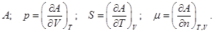 Посредством частного дифференцирования из неё далее можно извлечь прочие необходимые термодинамические характеристики, а именно: