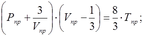 Уравнение (1) отсутствует параметр относящийся к конкретному веществу, поэтому можно ожидать, что оно выполняется для определений совокупности веществ, следует, что из (1) при равенстве двух приведенных параметров нескольких веществ, третий приведенный параметр также должен быть одинаковым для всех веществ – закон соответственных состояний.