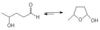 Полуацетали обычно не выделяют из реакционной смеси из-за их неустойчивости. Исключение составляют циклические полуацетали, образующиеся самопроизвольно из g - и d-гидроксиальдегидов. Например, доля циклического полуацеталя в его равновесной смеси с 5-гидроксипентаналем составляет 94%.