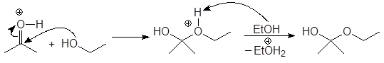 Механизм образования ацеталей и кеталей на первом этапе AN, а на втором SN1.