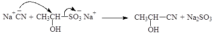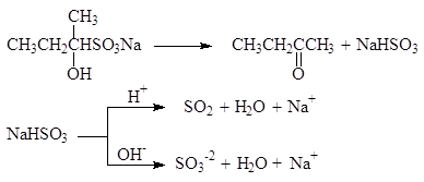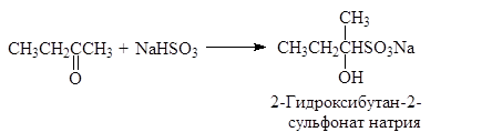 Реакция с гидросульфитом натрия используется для качественного определения альдегидов и кетонов, а также для их выделения и очистки. Следует, однако, заметить, что с гидросульфитом натрия реагируют только метилкетоны, имеющие группу СН3СО-. Решающую роль в реакциях расщепления дисульфитных производных играет то факт, что сульфогруппа является хорошей уходящей группой. Она может замещаться и на другие нуклеофильные группы, например: