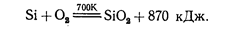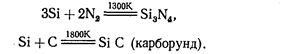Реакция с хлором и серой протекает около 500 К. При очень высокой температуре кремний взаимодействует с азотом и углеродом: