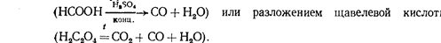 Из-за большого сродства к кислороду оксид углерода (II) используется как восстановитель оксидов многих тяжелых металлов (Fe, Co, Pb и др.). В лаборатории оксид СО получают обезвоживанием муравьиной кислоты