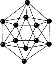 B4 C - полимер. Решетка карбида бора построена из линейно расположенных трех атомов углерода и групп, содержащих 12 атомов В, расположенных в форме икосаэдра (рис.3); твердость B4C превышает твердость SiC.