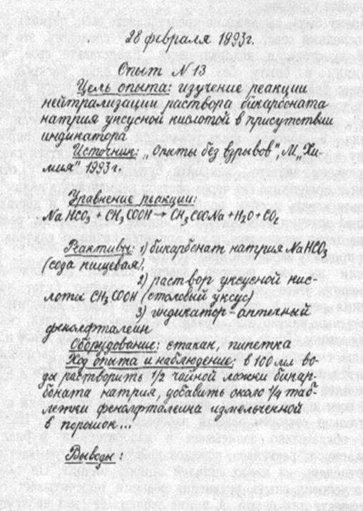 Чтобы вам было понятнее, как надо вести лабораторный журнал, а это, кстати, может быть обычная тетрадь, мы приводим для иллюстрации запись из такого журнала. Разумеется, это не образец, следовать ему в точности не обязательно: ведите записи так, как вам удобнее и привычнее. Но иметь перед глазами пример записи не помешает ...