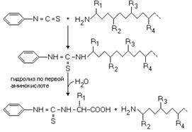 К раствору белка добавляют реактив Эдмона, содержащий фенилизотиоцианат.