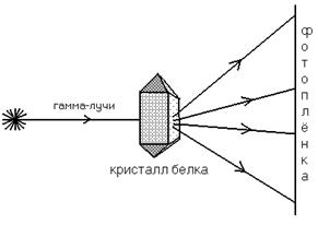 В результате облучения на фотопленке фиксируется карта электронной плотности (похожа на географическую карту). Далее производится компьютерный анализ полученного изображения, в результате чего строится пространственная модель белковой молекулы.