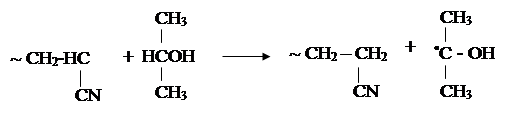 Обрыв цепи в процесс е полимеризации происходит в результате рекомбинации первичных радикалов. Таким образом полимеризация акрилонитрила в растворе подчиняется общим закономерностям радикальной полимеризации. Полимеризация в растворе в промышленности осложняется обычно примесями, имеющимися в растворителях, которые способствуют обрыву цепи.