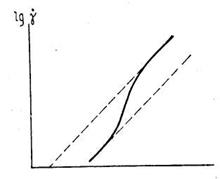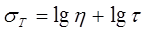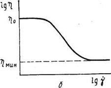В связи с тем, что скорости и напряжения сдвига могут меняться в широких пределах (до 10 порядков), зависимости sт от tчаще представляют в логарифмических координатах; типичная кривая течения псевдопластичной жидкости в широком интервале напряжения и скорости сдвига представлена на рис.2.