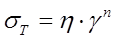 Для полимеров типична кривая течения как для псевдопластичного тела, математическое описание такого рода кривых наиболее точно осуществляется степенной зависимостью