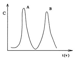 Вследствие этого новый элюент вытесняет компоненты, которые выходят из колонки в порядке возрастания взаимодействия с НФ. Выходная кривая этого метода имеет вид, показанный на рис. 2.
