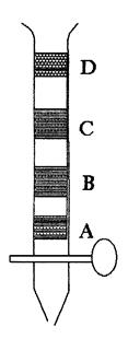 В случае разделения этим методом смеси, состоящей из окрашенных компонентов, в прозрачной колонке можно видеть зоны распределившихся вдоль сорбента компонентов. Сорбент с зонами называют внутренней хроматограммой (рис. 4). Она позволяет судить о качественном составе смеси.