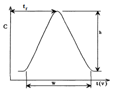 Каждый пик на элюентной колоночной хроматограмме характеризуют временем удерживания, шириной и формой (рис. 5). Время удерживания tr отчитывают от момента ввода смеси в колонку до появления на выходе из колонки максимума пика. С параметром tr связан параметр, называемый индексом удерживания R.