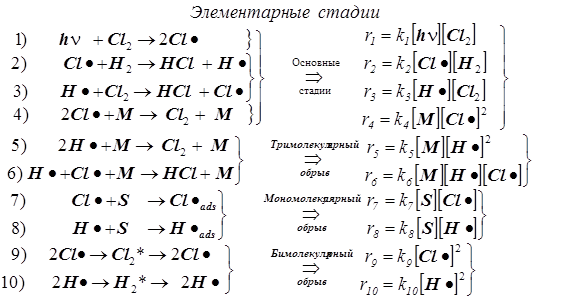 Скорости элементарных стадий | |||||||