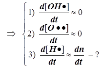 В реакционной газовой смеси (в пламени) содержится до 18% атомарного водорода. Для расчёта режимов образования и расходования этих наиболее активных частиц вводится упрощение, называемое методом полустационарных концентраций Н.Н.Семёнова, который состоит в том, что квазистационарное приближение вводится только для менее активных частиц. Концентрация наиболее активных частиц в принципе не может быть стационарной. На этой основе удаётся принципиально упростить схему её расчёта.