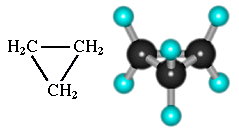 Атомы углерода в циклоалканах, как и в алканах, находятся в sp3–гибридизованном состоянии и все их валентности полностью насыщены, и образует четыре связи С-С и С-Н. Углы между связями зависят от размера цикла. В простейших циклах С3 и С4 углы между связями С-С сильно отличаются от тетраэдрического угла 109,5°, что создает в молекулах напряжение и обеспечивает их высокую реакционную способность. Свободное вращение вокруг связей С-С, образующих цикл, невозможно. Простейший циклоалкан – циклопpопан С3Н6 – представляет собой плоский трехчленный карбоцикл