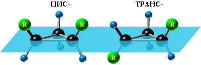 2. Цис-транс-изомерия, обусловленная различным взаимным расположением в пространстве заместителей относительно плоскости цикла. В цисизомерах заместители находятся по одну сторону от плоскости кольца, в трансизомерах – по разные: