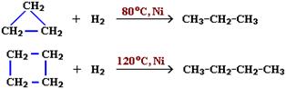 Малые циклы (С3 – С4) довольно легко вступают в реакции гидрирования: