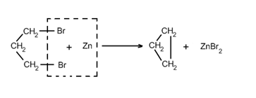 Дегалогенирование дигалогенопроизводных. Трех- и четырехчленные циклы получают децствием цинка на соответствующие дигалогенопроизводные:
