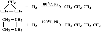 Малые циклы (С3 Н6 – С4 Н8 ) довольно легко вступают в реакции гидрирования:
