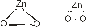 Для цинка характерна степень окисления +2. поэтому цинк имеет только один оксид: ZnO. Другие оксиды цинка неизвестны. Возможно существование пер оксида цинка ZnO2 . ковалентность цинка в пер оксиде равна двум, строение его молекулы приведено на рисунке.