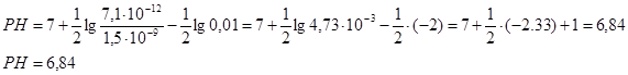 Рассмотрим электродные процессы на катоде. Материал катода – уголь или графит, катод инертен и не будет брать участия в электрохимических процессах. На катоде также возможны несколько реакций, рассмотрим их. РН среды равно 2,5. На графите при температуре 20ºС перенапряжение выделения водорода при плотности тока 1 А/см2 равно 1,2 В, а при плотности тока 1 мА/см2 всего лишь 0,6 В. За уравнением Нернста мы можем вычислить значение потенциала перенапряжения водорода при РН=2,5. потенциал водородного электрода находится в линейной зависимости от РН среды.