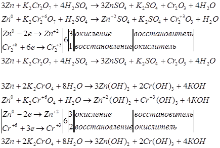 Приведенное выше уравнение будет примеров взаимодействия цинка в щелочной среде.