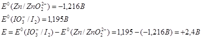 -1,216 В, это значит, что цинк может восстанавливать в щелочной среде все соединения с более положительным потенциалом, это будут кислородные соединения хрома, марганца, олова, свинца и т.п.