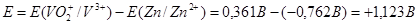 Гальванический элемент состоит из цинковой пластины опущенной в раствор соли, что содержит ионы V3+