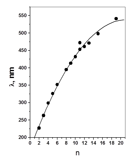 l = (138 ± 3) + (43,6 ± 1,2) n – (1,6 ± 0,1) n 2 нм