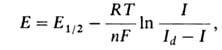 Форма волны для обратимой электрохимические реакции описывается уравнением: