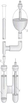 Рис. 4. Электрохимическая ячейка с капающим ртутным электродом: 1 - анализируемый раствор, 2 - ртутный капающий электрод, 3 - резервуар с ртутью, 4 - электрод сравнения