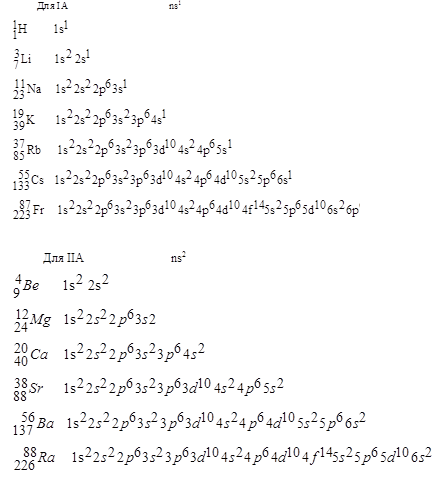 Атомы элементов II А группы имеют по два валентных электрона на s подуровне внешнего энергетического уровня.