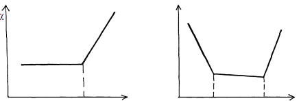 Рис. 4. Вид кривых кондуктометрического титрования: а - слабой кислоты (основания) сильным основанием (кислотой); б - смеси слабой и сильной кислот (оснований) сильным основанием (кислотой).