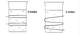 Ячейка с анализируемым раствором при высокочастотном титровании помещается или между пластинками конденсатора, или внутри индукционной катушки. Соответственно этому в первом случае ячейку называют конденсаторной или емкостной, или С-ячейкой, а во втором - индуктивной или L-ячейкой (рис. 5).