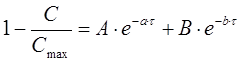 яке є рівнянням кінетики у вигляді двох експонент (6) із від’ємними показниками: