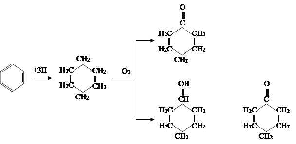 Окисление циклогексана проводят кислородом воздуха в жидкой фазе при 130-140o С и 15-20 кгс / см2 в присутствии катализатора – стеарата марганца. При этом образуются циклогексанон и циклогексанол в соотношении 1:1. Циклогексанол дегенерирует до циклогексанона, а последний превращается в капротам описанным выше способом.